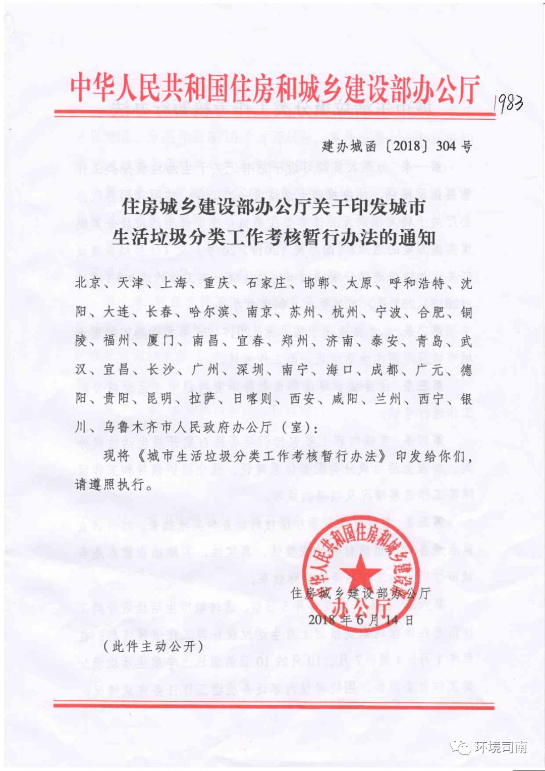 城市生活垃圾分类工作考核暂行办法